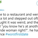 This article was originally published on petsreporter.com We all have to kiss a few frogs before we find our prince. And let's be honest; first dates are almost always awkward, uncomfortable, sometimes boring, and other times downright cringy. Jimmy Fallon challenged his fans to share their funniest, most embarrassing, and cringe-worthy first date stories. You might find it … [Read more...] about 40+ Absurd, Awkward, and Cringy First Date Stories Shared by Jimmy Fallon’s Audience
